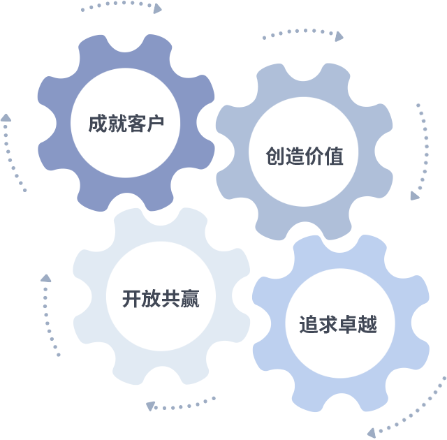 成就客户是一切决策的出发点,创造价值是衡量所有工作的标准,追求卓越是俄罗斯专享会全民vip做事做人的态度,开放共赢是俄罗斯专享会全民vip的格局也是最终的结果。价值观的齿轮环环相扣,推动着组织里的每个人不断向前。